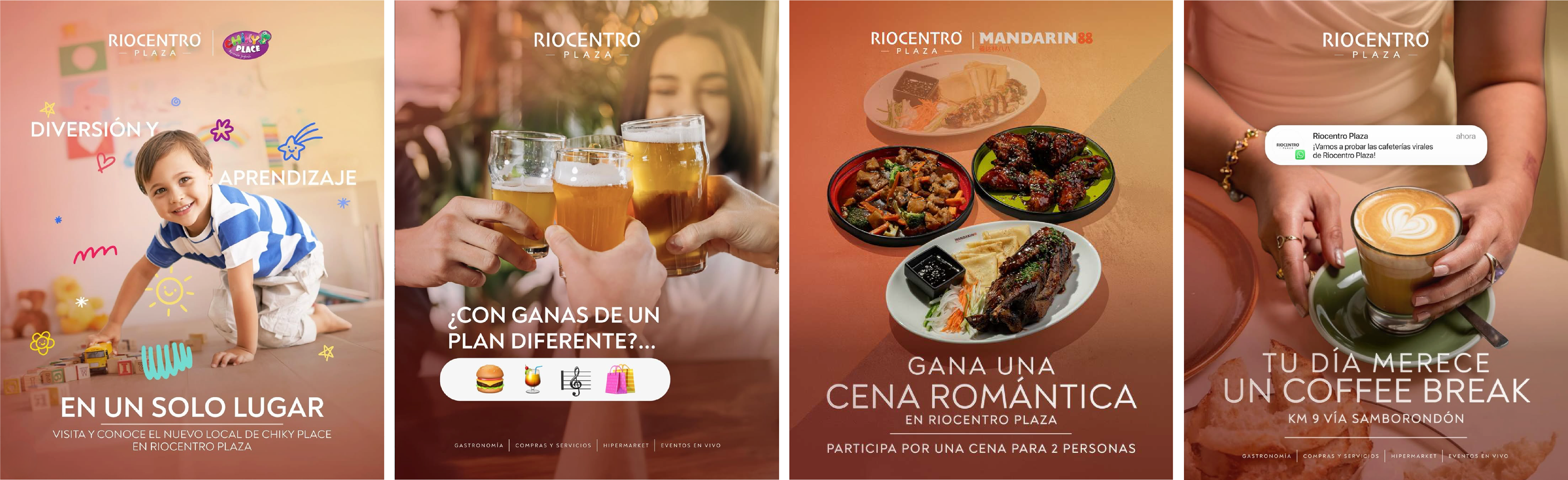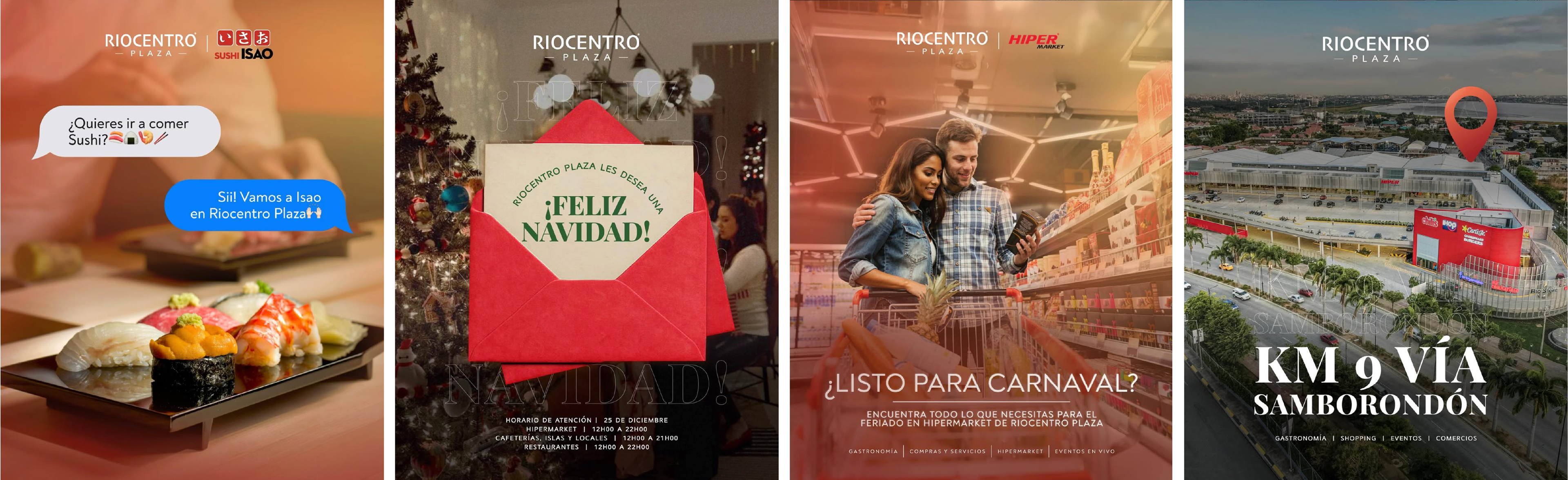Riocentro Plaza es un centro comercial en Ecuador, con una propuesta que combina gastronomía, retail y entretenimiento. Desde su inauguración, desarrollé su línea gráfica desde cero a partir de un logo y tipografía base. Estuve a cargo del diseño de contenido para redes sociales, así como de materiales de marketing y difusión de eventos, incluyendo colaboraciones con las marcas del centro comercial, asegurando una comunicación visual coherente.